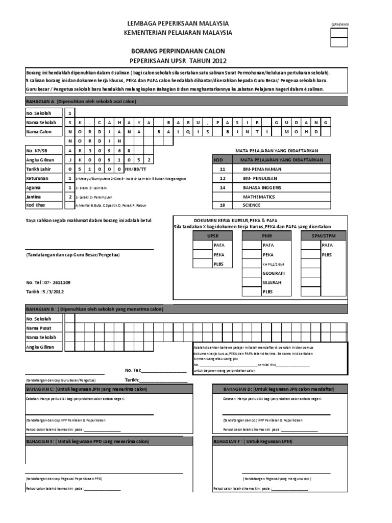 Borang Perpindahan Calon Upsr / Panduan permohonan pinjaman ptptn 2021 online (borang).. (a) calon hendaklah mendaftar peperiksaan dengan menggunakan borang pendaftaran yang ditetapkan oleh lembaga peperiksaan. I heard the closing date is 30 mac. Calon pelajar yang berminat boleh mendapatkan borang pendaftaran di Kongsikan kepada setiausaha peperiksaan guru kelas peperiksaan. Ujian pencapaian sekolah rendah (upsr)dibatalkan 1, 2, 3, 7 dan 8 september 2020.